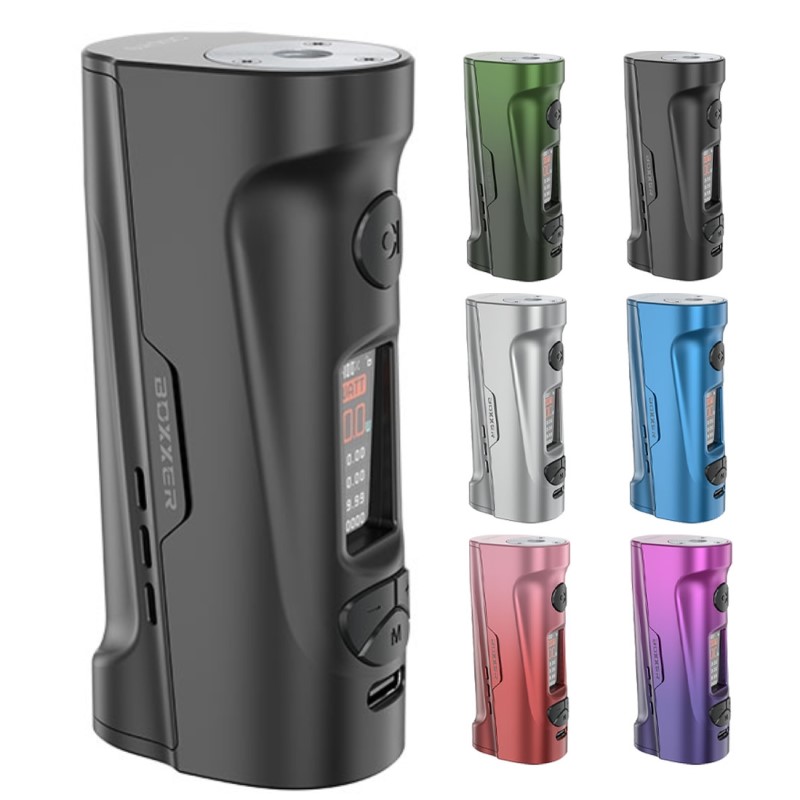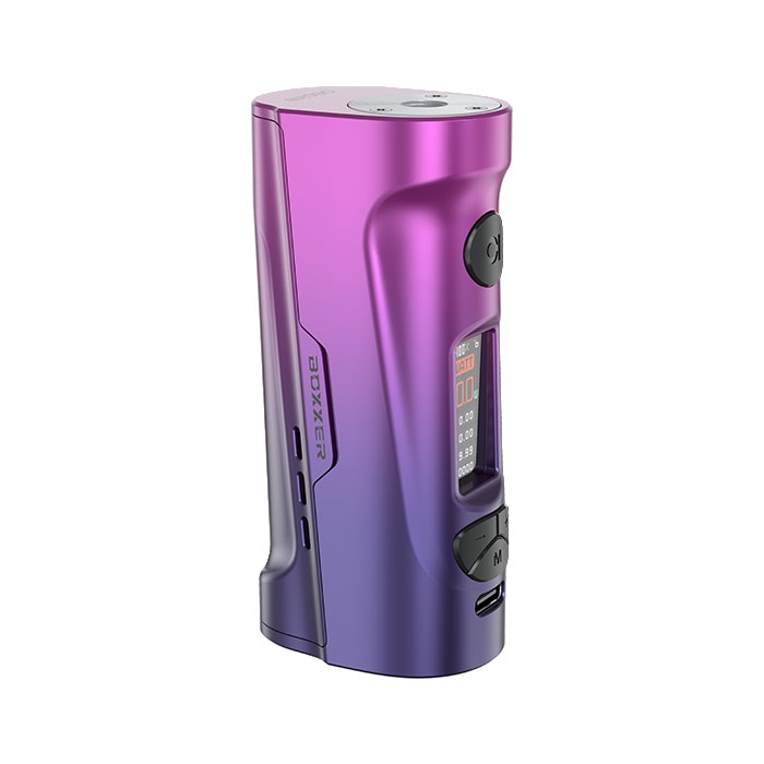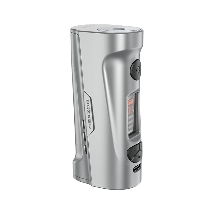 Boxxer è la nuova box single battery ideata da Aspire, compatta ed ergonomica che consente di regolare la potenza fino a 80W e svapare sia di guancia che di polmone. Essendo dotata di attacco 510, può montare qualsiasi atomizzatore con diametro massimo 28mm. La Box si alimenta con una singola batteria 18650 (non inclusa), da inserire nel vano nascosto dallo sportellino magnetico. La batteria si può ricaricare anche internamente alla mod tramite porta la USB-C 2A.