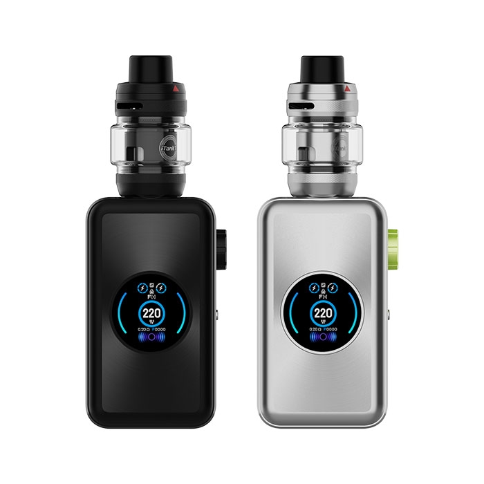 A completare il kit troviamo l’iTank T, un atomizzatore a testine successore del celebre iTank, che può ospitare 6ml di liquido, offre un tiro regolabile tramite anello AFC superiore ed un sistema di riempimento dall’alto con apertura del top cap. L’atom è compatibile con le resistenze GTi, di cui due incluse all’interno della scatola: