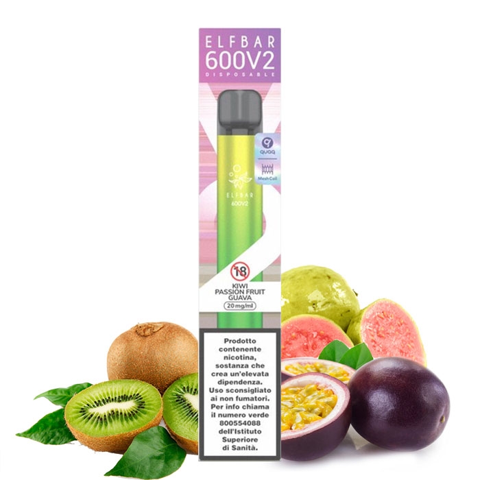 KIWI PASSION FRUIT GUAVA V2 20mg Disposable - 600 Puff - Vape Pen Usa e Getta - Elf Bar